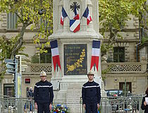 Une foule nombreuse s’est retrouvée au monument aux morts, où un peloton du CFIM du Camp des garrigues rendait les honneurs, avec une délégation de la brigade de gendarmerie d’Uzès, un détachement des sapeurs-pompiers d’Uzès, les porte-drapeaux, les associations patriotiques et les anciens combattants. Après un dépôt de gerbes par les associations d’anciens combattants et par le maire d’Uzès, le président du Comité du souvenir français a appelé les noms de tous les soldats morts pour la France inscrits sur le monument ainsi que les noms des six militaires morts pour la France en opération extérieure durant l’année écoulée. Une minute de silence a conclu cet hommage.
