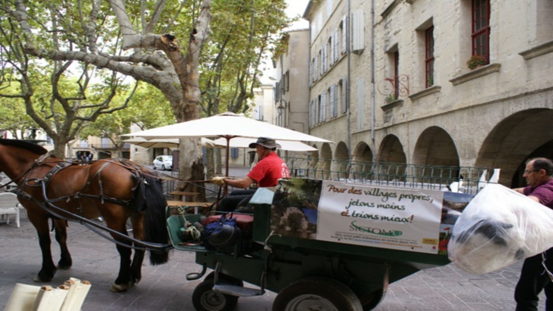 Cette fois, le SICTOMU est le principal acteur. Il collecte le verre à l'aide d'une voiture hippomobile, tirée par le cheval. Le procédé est à l'étude pour imaginer le pérenniser pour les années suivantes comme pour l'arrosage de certains massifs de plantes difficiles d'accès sur la ville.