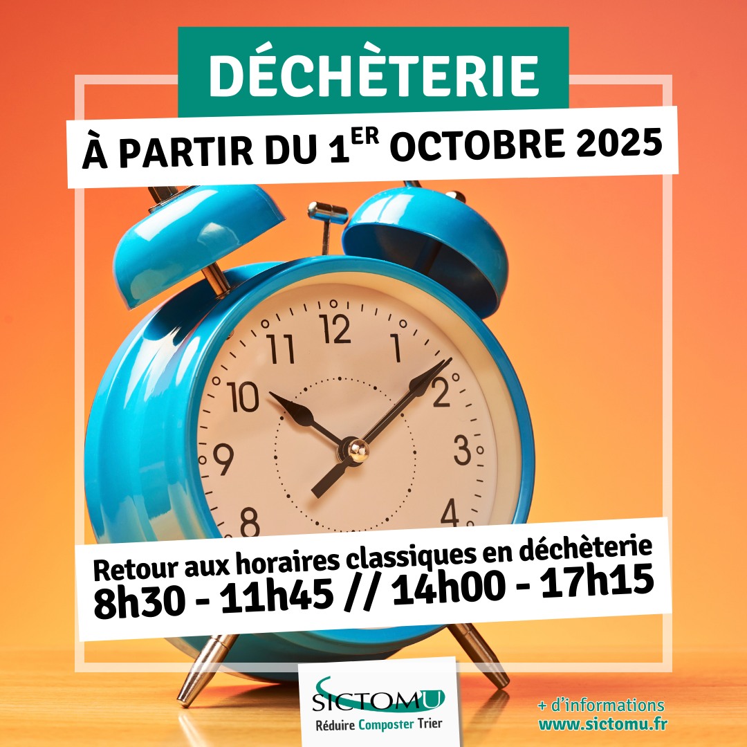 À compter du 1er octobre, l’ensemble des déchèteries du SICTOMU adopte les horaires d’hiver.