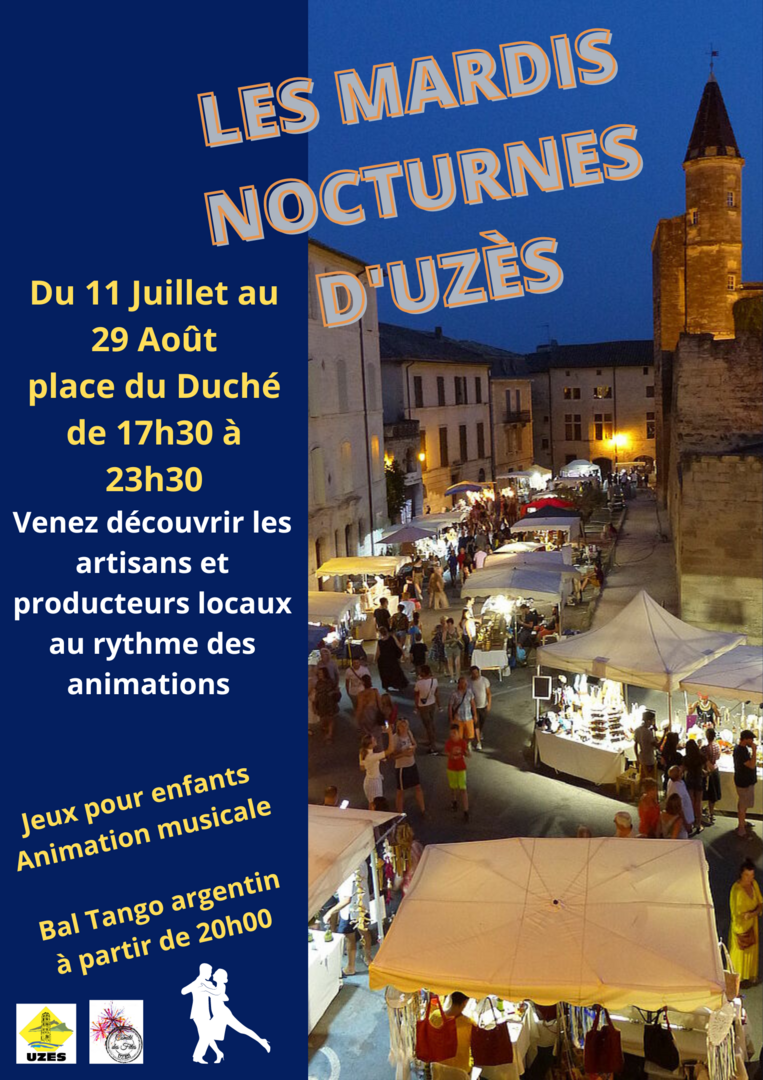 Le Comité des fêtes lance ainsi ses huit marchés nocturnes à compter du mardi 11 juillet sur la Place du Duché à Uzès. La Ville d'Uzès s'associe à l'événement dans l'organisation, le tout en musique et en danse avec des animations variées qui rythmeront ces soirées ainsi que des animations pour les enfants.