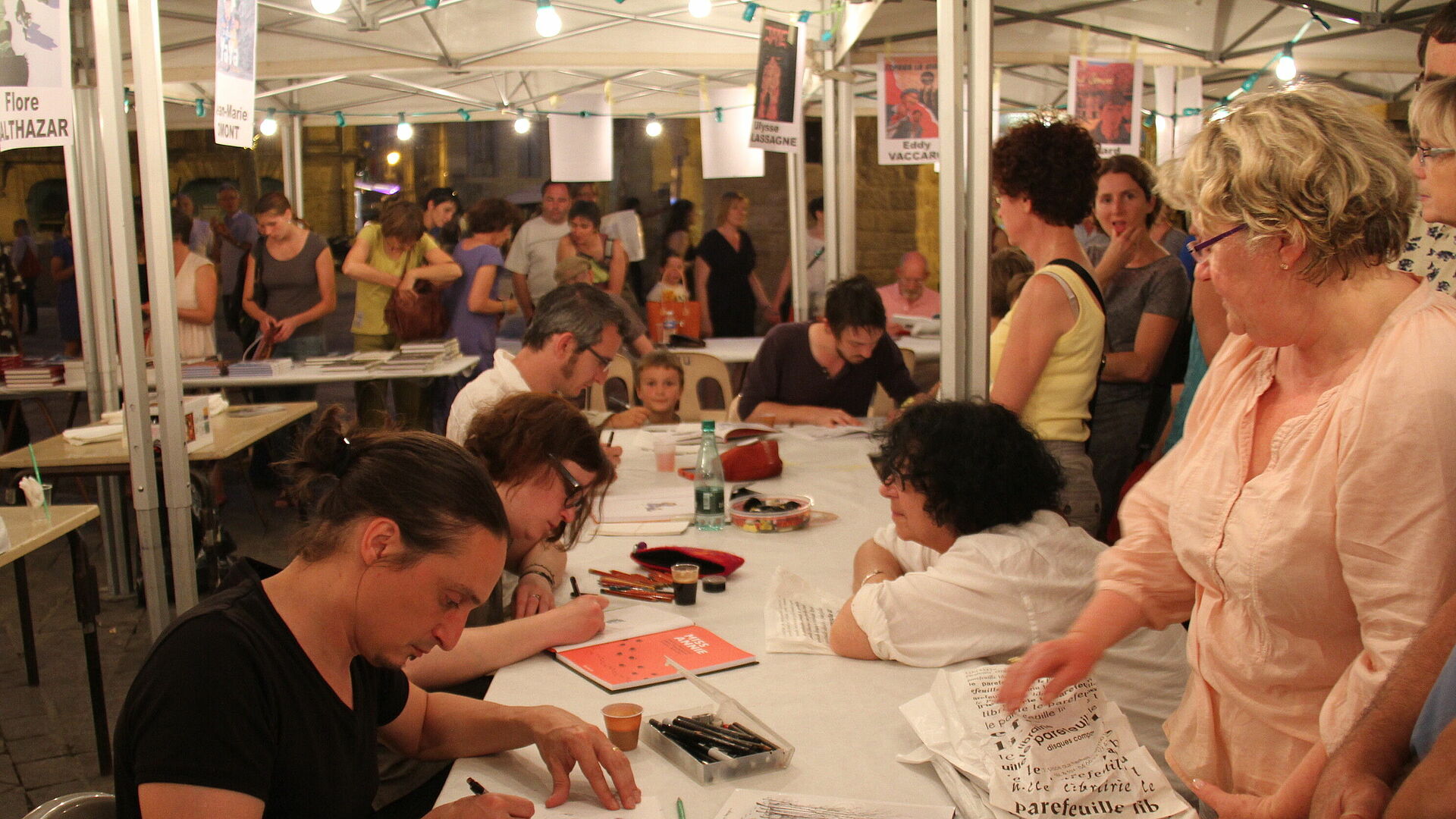 Rendez-vous, sur la place aux herbes pour le marché aux dédicaces, l'ambiance et la musique