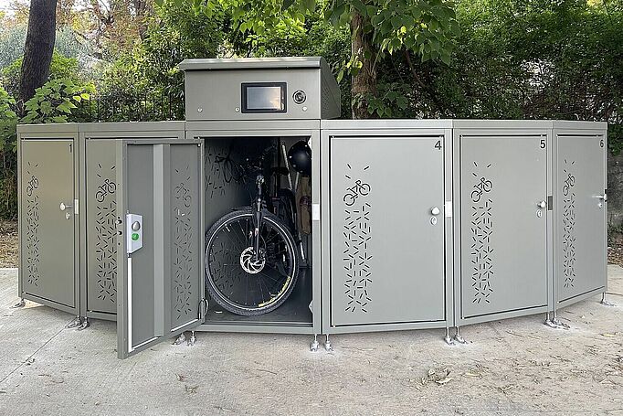 Disposés en demi-lune, les box peuvent accueillir individuellement et simultanément 6 vélos sur chaque site.