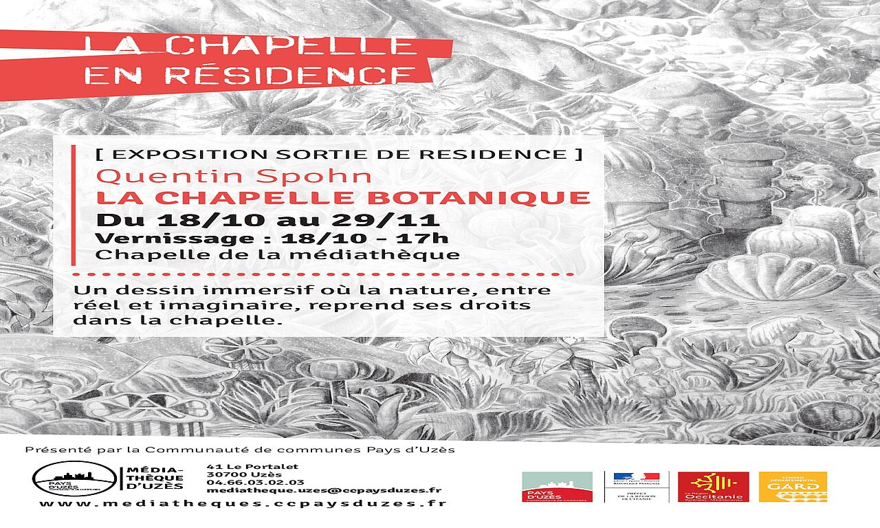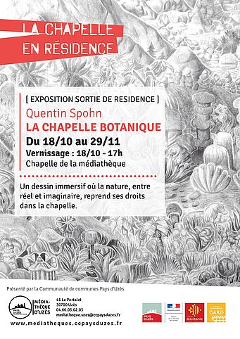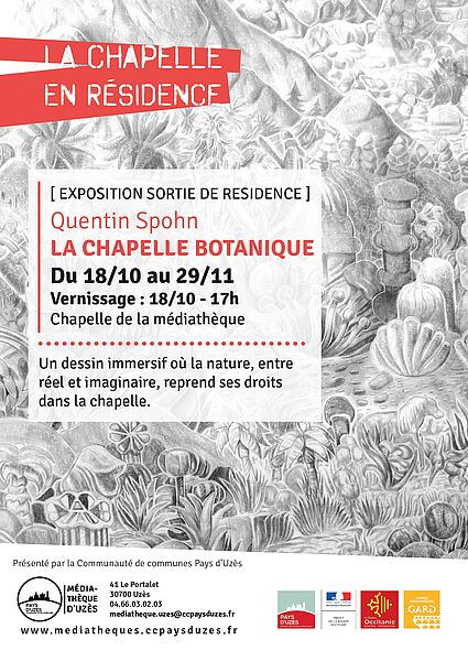 Inspiré par l’idée d’une chapelle en friche, il imagine une nature qui reprend peu à peu ses droits : elle grimpe sur les murs, envahit le sol, couvre les vitres…
