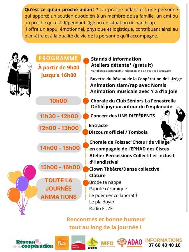 Toute la journée : Stands d'information, ateliers détente (artthérapie, naturopathie, relaxation...), buvette de réseau de la coopération de l'Uzège, animations musicales