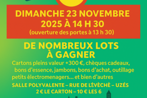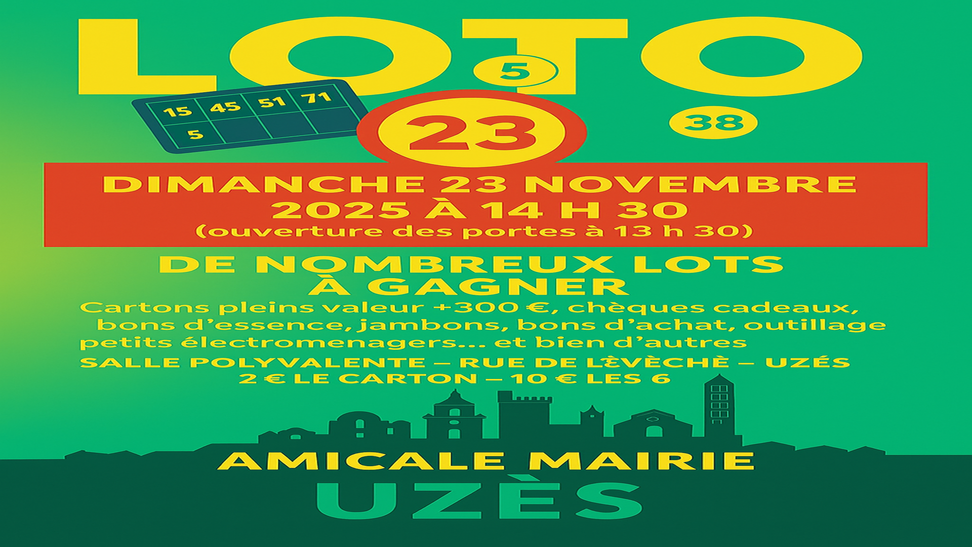 Venez tenter votre chance pour remporter l'un des nombreux lots à gagner lors du loto organisé par l'amicale de la mairie d'Uzès. De la quine aux bons d'achats, visez aussi les cartons pleins à 300 € !