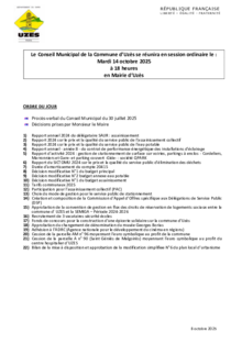 2025Conseil municipal du 14 octobre 202545 documentsPublié le 08 octobre 2025 CM_14_10_2025_-_ORDRE_DU_JOUR.pdf (.pdf, 203,4 Ko) Télécharger CM_14_10_2025_-_LISTE_DES_DELIBERATIONS.pdf (.pdf, 157,8 Ko) Télécharger DCM_1_-_Rapport_annuel_2024_du_délégataire_SAUR_-_assainissement.pdf (.pdf, 740,2 Ko) Télécharger DCM_2_-_Rapport_2024_sur_le_prix_et_la_qualité_du_service_public_de_l_assainissement_collectif.pdf (.pdf, 764,8 Ko) Télécharger DCM_3_-_Rapport_2024_sur_le_prix_et_la_qualité_du_service_public_de_l_eau_potable.pdf (.pdf, 756,6 Ko) Télécharger DCM_4_-_Rapport_annuel_année_8_du_contrat_de_performance_énergétique_des_installations_d_éclairage.pdf (.pdf, 740,0 Ko) Télécharger DCM_5_-_Rapport_d_activité_2024_gestion_de_stationnement_de_surface_sur_voiries_et_parking_couvert_Gide_-_société_QPARK.pdf (.pdf, 772,6 Ko) Télécharger DCM_6_-_Rapport_annuel_2024_du_SICTOMU_sur_le_prix_et_la_qualité_du_service_public_d_élimination_des_déchets.pdf (.pdf, 830,3 Ko) Télécharger DCM_7_-_Modalités_d_amortissement_des_immobilisations_-_Subventions_d_équipement_versées.pdf (.pdf, 1,6 Mo) Télécharger DCM_8_-_Décision_modificative_n__1_Budget_Principal.pdf (.pdf, 1,2 Mo) Télécharger DCM_9_-_Décision_modificative_n__2_Budget_Eau_Potable.pdf (.pdf, 1,2 Mo) Télécharger DCM_10_-_Décision_modificative_n__1_Budget_assainissement.pdf (.pdf, 927,6 Ko) Télécharger DCM_11_-_Tarifs_communaux_2025_-_Modification_section_20.pdf (.pdf, 916,8 Ko) Télécharger DCM_12_-_Participation_pour_l_assainissement_autonome__PAC_.pdf (.pdf, 3,1 Mo) Télécharger DCM_13_-_Choix_du_mode_de_gestion_pour_le_service_public_de_stationnement.pdf (.pdf, 2,4 Mo) Télécharger DCM_14_-_Création_et_composition_de_la_Commission_d_Appel_d_Offres_pour_les_Délégations_de_Service_Public__DSP_.pdf (.pdf, 1,3 Mo) Télécharger DCM_15_-_Approbation_de_la_convention_de_gestion_en_flux_des_droits_de_réservation_de_logements_sociaux_entre_la_commune_d__UZES_et_la_SEMIGA___Période_2024-2026.pdf (.pdf, 1,1 Mo) Télécharger DCM_16_-_Recrutement_de_3_vacataires_sécurité_écoles.pdf (.pdf, 978,8 Ko) Télécharger DCM_17_-_Fonds_de_concours_pour_la_construction_d_une_épicerie_solidaire_sur_la_commune_d_Uzès.pdf (.pdf, 925,3 Ko) Télécharger DCM_18_-_Approbation_du_changement_de_dénomination_du_musée_Georges_Borias.pdf (.pdf, 912,6 Ko) Télécharger DCM_19_-_Adhésion_à_l_ADRC__Agence_nationale_pour_le_développement_du_cinéma_en_régions_.pdf (.pdf, 1,007,5 Ko) Télécharger DCM_20_-_Cession_de_la_parcelle_AM_n__96_moyennant_l_euro_symbolique_au_profit_de_la_commune.pdf (.pdf, 1,1 Mo) Télécharger DCM_21_-_Cession_de_la_parcelle_A_n__90__Saint_Géniès_de_Malgoirès__moyennant_l_euro_symbolique_au_profit_du_centre_hospitalier_d_UZES.pdf (.pdf, 1,0 Mo) Télécharger DCM_22_-_Bilan_de_la_mise_à_disposition_et_approbation_de_la_modification_simplifiée_N6_du_PLU.pdf (.pdf, 2,7 Mo) Télécharger 1_-_RAD_2024_UZES.pdf (.pdf, 7,5 Mo) Télécharger 2_-_RPQS_Assainissment_2024_compressed.pdf (.pdf, 502,9 Ko) Télécharger 3_-_RPQS_Eau_2024_compressed.pdf (.pdf, 3,3 Mo) Télécharger 4_-_UZES_CPE_RAPPORT_ANNUEL_JUIN_2025_compressed.pdf (.pdf, 1,0 Mo) Télécharger 5_-_Rapport_Activité_Uzès_2024.pdf (.pdf, 14,0 Mo) Télécharger 6_-_Rapport-annuel-2024-V5_compressed.pdf (.pdf, 4,8 Mo) Télécharger 11-_Tarifs_communaux.pdf (.pdf, 1,0 Mo) Télécharger 12_-_ANNEXE_PAC.pdf (.pdf, 1,001,9 Ko) Télécharger 13_-_Uzès_RMDG_stationnement_20251009.pdf (.pdf, 494,4 Ko) Télécharger 15_-_Convention_UZES_-_SEMIGA.pdf (.pdf, 1,5 Mo) Télécharger 20-_fiche_d_urbanisme_parcelle_AM_96.pdf (.pdf, 122,1 Ko) Télécharger 20-_Photo_capitelle.pdf (.pdf, 1,3 Mo) Télécharger 20-_plan_parcelle_AM96.pdf (.pdf, 331,5 Ko) Télécharger 21-_Avis_domaines_24-09-2025_Parcelle_A90.pdf (.pdf, 392,6 Ko) Télécharger 21-_courrier_CH_Uzès.pdf (.pdf, 798,8 Ko) Télécharger 21-_Plan_cadastral_parcelle_A_90.pdf (.pdf, 52,9 Ko) Télécharger 21-_plan_de_situation_parcelle_A_90.pdf (.pdf, 978,2 Ko) Télécharger 22-_avis_conforme_de_dispense_MRAe.pdf (.pdf, 174,0 Ko) Télécharger 22-_avis_DDTM_MS_6.pdf (.pdf, 738,0 Ko) Télécharger 22-_PLU_Uzès_Modification_simplifiée_Notice_de_présentation_V2.pdf (.pdf, 1,3 Mo) Télécharger 22-_projet_règlement_zone_UE_écrit_modifié_suite_PPA.pdf (.pdf, 472,5 Ko) Télécharger PrécédentRetour à la listeSuivant