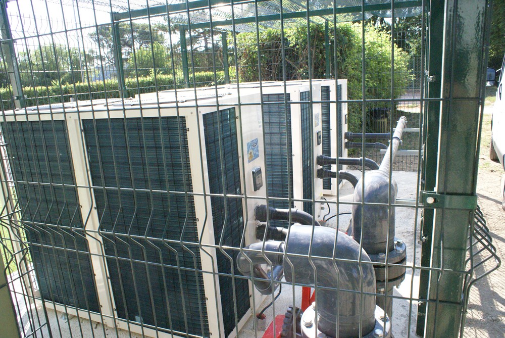 Les trois pompes à chaleur permettent d'économiser l'énergie et l'environnement. L'eau peut ainsi être réchauffée. La consommation d'1 kw/heure d'électricité se traduit par la restitution de 5 kw/heure d'énergie grâce à la récupération de l'air et au réchauffement de l'eau dans les turbines.