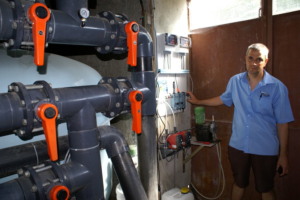 Désormais, les deux piscines, grand et petit bassin bénéficient d'un traitement rationalisé de l'eau, régulant et contrôlant automatiquement la consommation des produits d'entretien (chlore et PH).