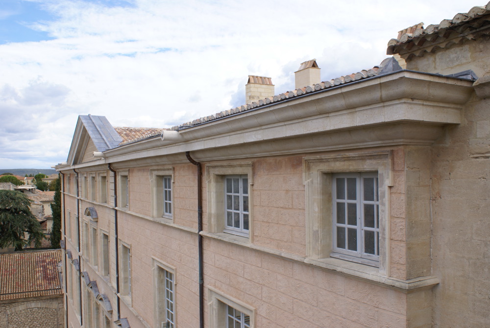 La restauration de l'ancien palais épiscopal d'Uzès datant du XVIIe siècle vient d'être achevée "permettant de mettre hors d'eau, hors d'air le bâtiment", explique Gabrielle Welisch, architecte du patrimoine d'Uzès qui a conduit les travaux pendant 10 mois aux côtés des entreprises Bourgeois pour la charpente, la couverture et la zinguerie et Vivian pour la maçonnerie et la pierre de taille pour le compte de la Ville d'Uzès. Ce chantier représente 1 130 m2 de toiture pour un montant global de 1 389 884 euros ttc. Il a permis de réhabiliter le monument historique classé lui redonnant ainsi la possibilité d'imaginer une nouvelle destination pour le futur.