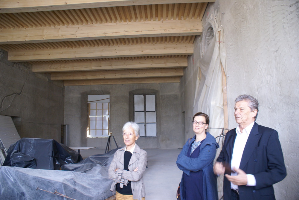 La restitution de ce plafond effondré du grand salon au premier étage permet d’envisager à nouveau l’utilisation des espaces intérieurs d’une grande valeur patrimoniale, de "rétablir la circulation dans le musée" et dans tout le bâtiment. "La tranche de travaux pour refaire les couvertures a permis de gagner un étage dans les combles" ajoute-t-elle. En visitant, on peut y voir l'utilisation de ces espaces par une ancienne auto-école, avec des panneaux peints sur les murs ou encore du morse... Les menuiseries sont inexistantes à certains endroits ayant souffert de la vétusté du bâtiment.