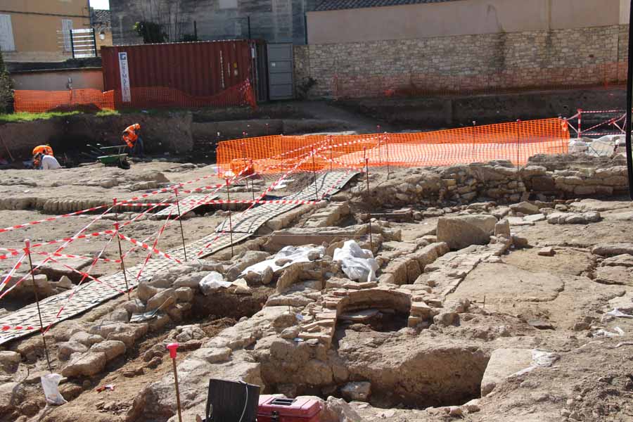 Visite des fouilles archéologiques romaines révélées par l'INRAP sur le site de l'ancienne gendarmerie d'Uzès.