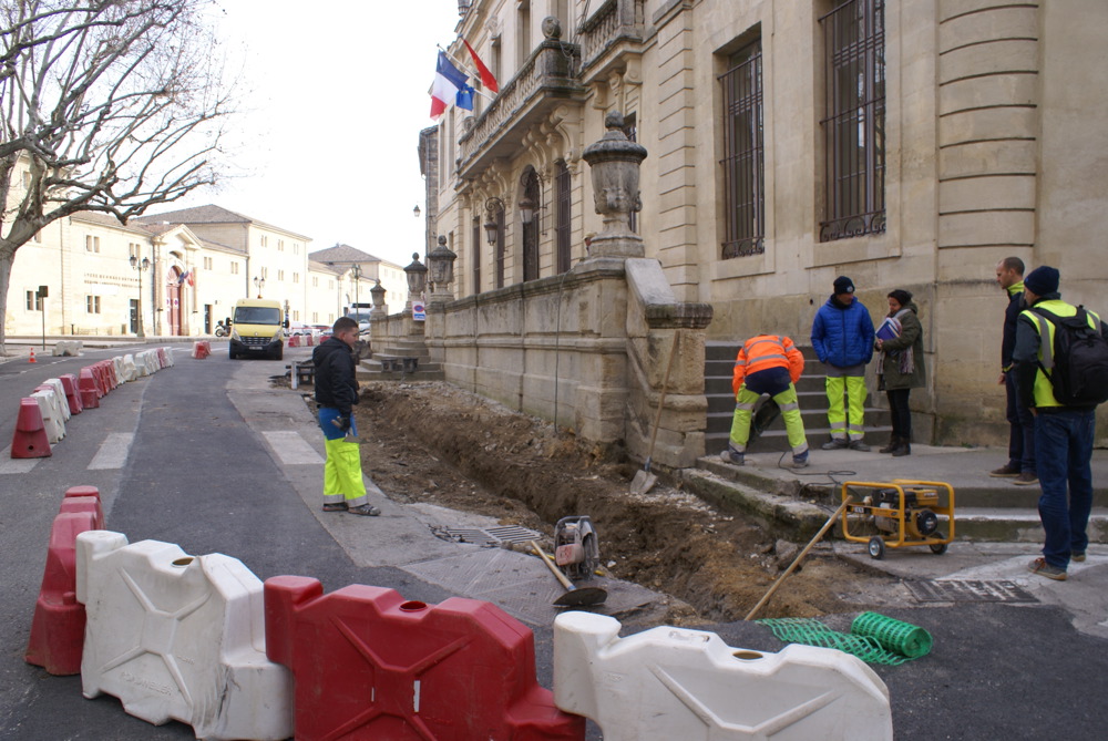 Réseaux enterrés rues Benoît et Jacques d'Uzès : 65 mètres de conduite d'eau potable, 40 mètres d'eaux usées