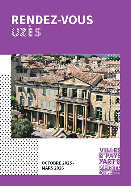 PatrimoineRendez-vous Uzès Octobre 2025 à Mars 20261 documentPublié le 06 octobre 2025 Rendez-vous_Uzès_Octobre_2025_à_Mars_2026.pdf (.pdf, 2,3 Mo) Télécharger Feuilleter Programme Rendez-vous Uzès Ville d'Art et Histoire, octobre 2025 à mars 2026Visites guidées, découvertes, conférences, expositions... Laissez-vous tenter et guider.PrécédentRetour à la listeSuivant